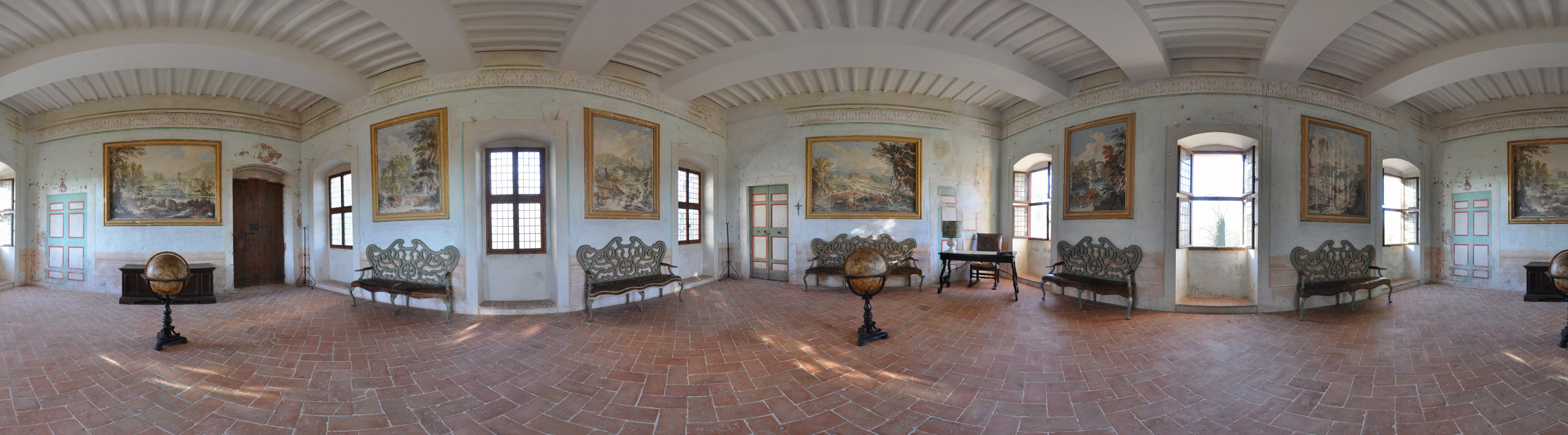 A 360 degrees photo of the Conference room at Villa Aureli.